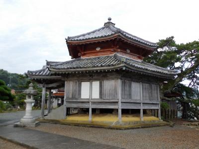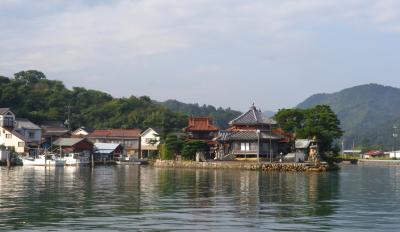 西堂寺六角堂は、山間の小さな漁港の一角にある浮島に建っています。
