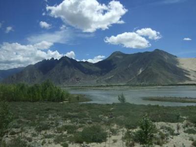 3時間のフライト。 拉薩空港は山に囲まれた川横の僅かな平地を利用した小...