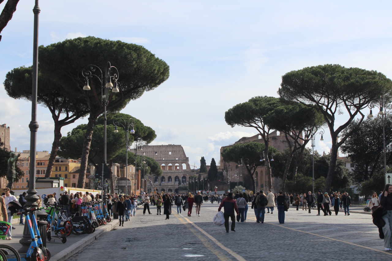 ヴェネツィア広場からコロッセオまで続くフォリ・インペリアリ通りは、