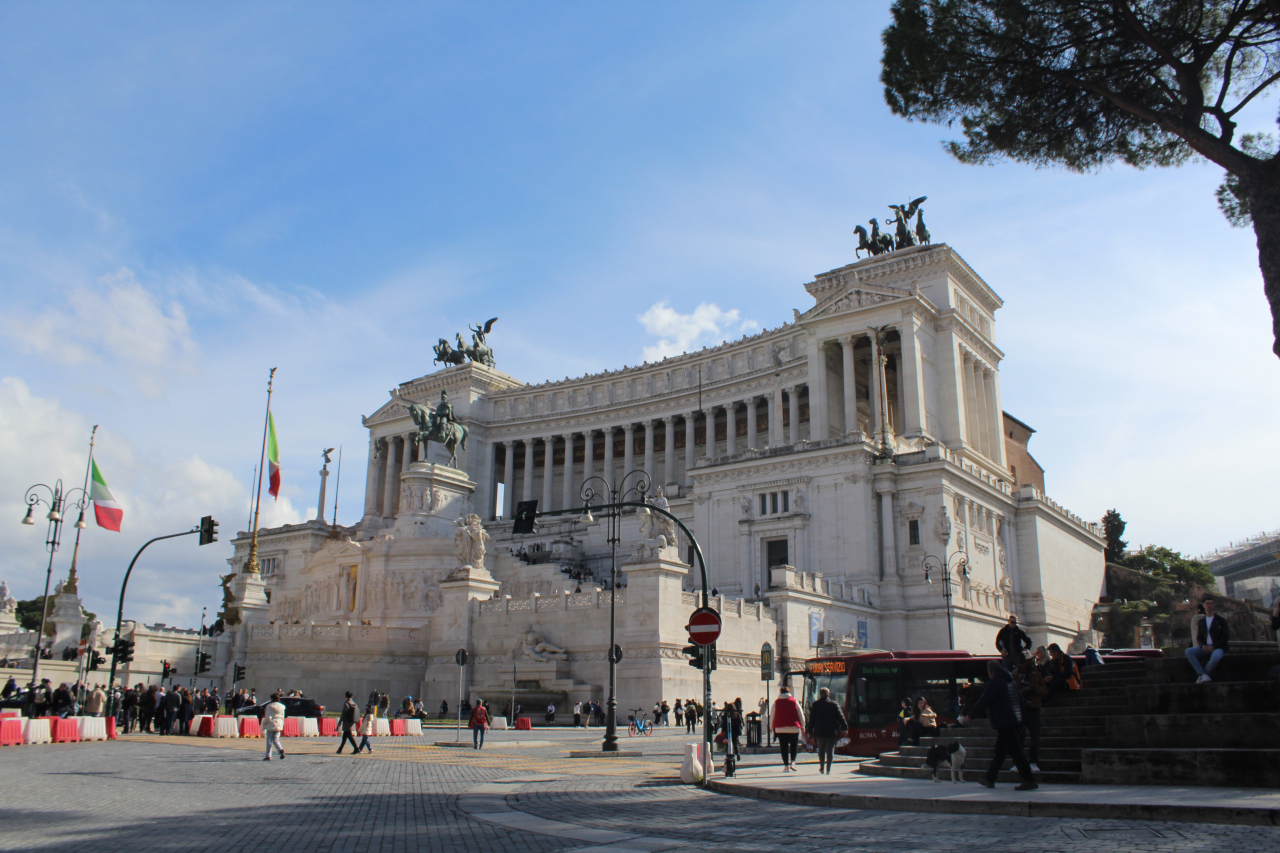 ヴィットーリオ・エマヌエーレ2世記念堂は、ヴェネツィア広場とカピトリーノの丘の間に建設され、1911年に完成しました。