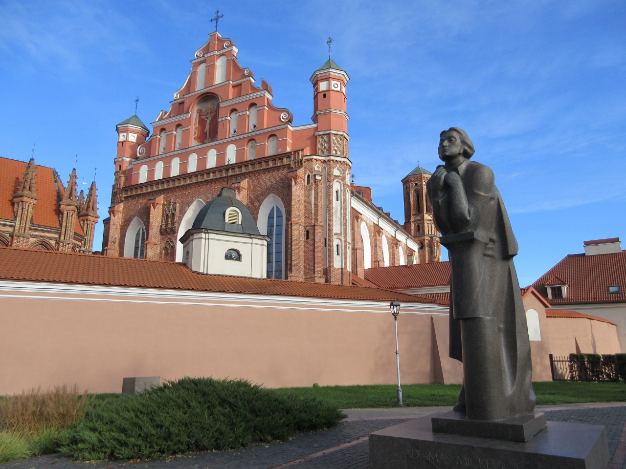 聖アンナ教会の脇にアダム ミツキェヴィチの像があります。
