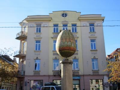 イースターエッグの彫刻がある小さな広場を見つけました。