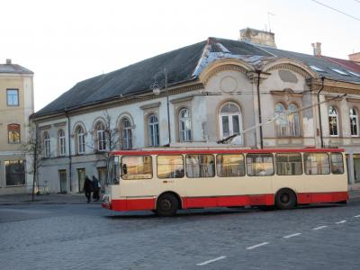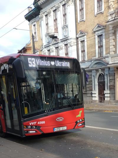 多くのバスの行先表示が、Vilnius ? Ukrainaとなっていて、