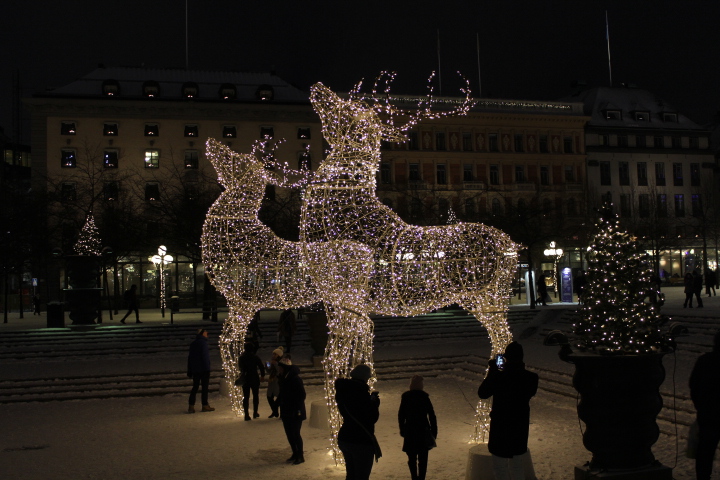 クリスマスツリーやヘラジカがキラキラしていました。