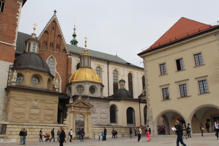 ヴァヴェル大聖堂のサイドからピンク色の建物の下を通ると、
