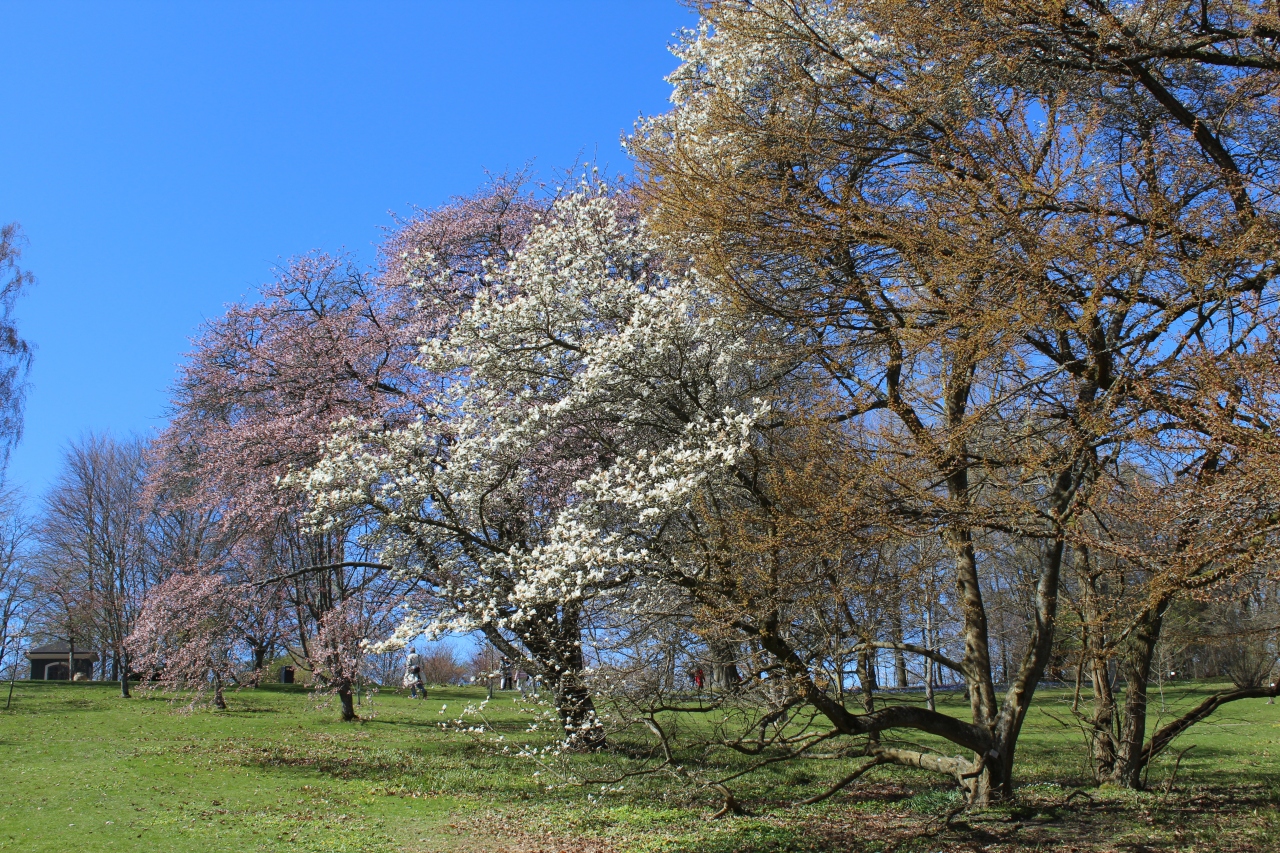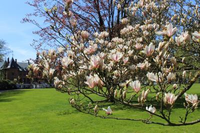 チューリップ、水仙、マグノリアなど春の花が咲き乱れていた。