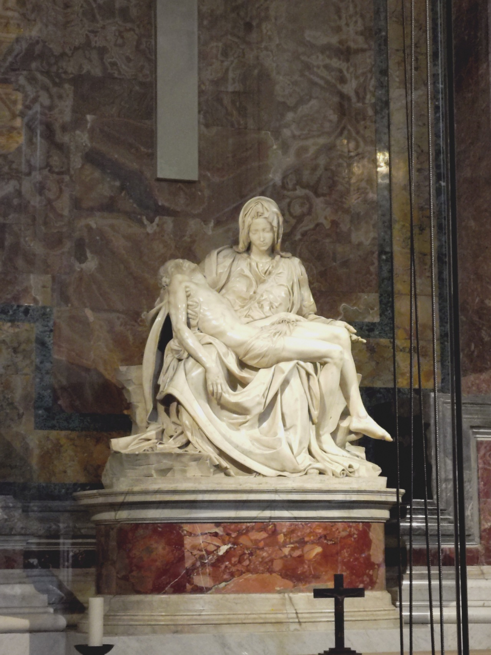ラ ピエタは、磔刑に処され十字架から降ろされたイエス・キリストを腕に抱く聖母マリアがモチーフになっており、ダビデ像と並ぶ最高傑作と言われています。