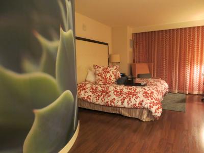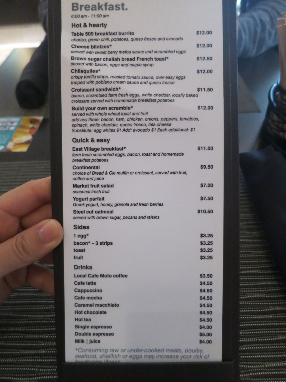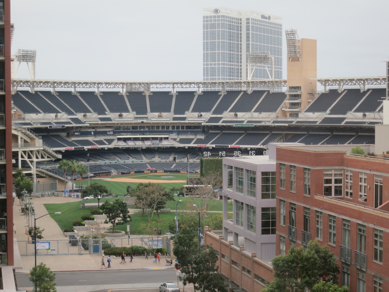 朝食付きプランで宿泊。眺望はペトコパークが見れるお部屋。でもアーリーチェックインで入れたお部屋はペトコパークの壁くらいしか見れなかったので変えて欲しいとお願いしたら3時以降なら可能との事。こういう場合はチップを渡した方が良いです。そして荷物を預けて観光へ。チェックイン前に荷物を預けた場合は引換券をもらうので再チェックインの時に忘れずに引換券を渡せばスムーズに部屋の鍵を渡してくれます。朝食券を1日1枚もらうんだけど1ドリンクのみ無料。席についたらオレンジジュース、紅茶、コーヒーの中のどれがいい?といきなり聞かれます^^; とりあえずオレンジジュースをオーダーした後に紅茶をオーダーしたら有料+サービス料になるので気をつけて下さい。メニューはいろいろありますが、多からず少なからずなのでちょうど良い感じでした。もし2名で朝食カードが無い場合$35くらいかかるかも。1度テーブルに朝食券を置いてたのにチェックの紙を持ってきたので金額を見たらそうなってました(笑)私達は朝食券を持ってるよと伝えたら無料になったので、よく見えるところに朝食券を置いた方が良いです。もちろんチップは忘れずに。9Fのラウンジ(オープンエアー)は夜とても素敵でした。私はお酒が飲めないのと寒かったので行かなかったんだけど宿泊される方は行ってみても良いかも^^