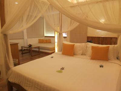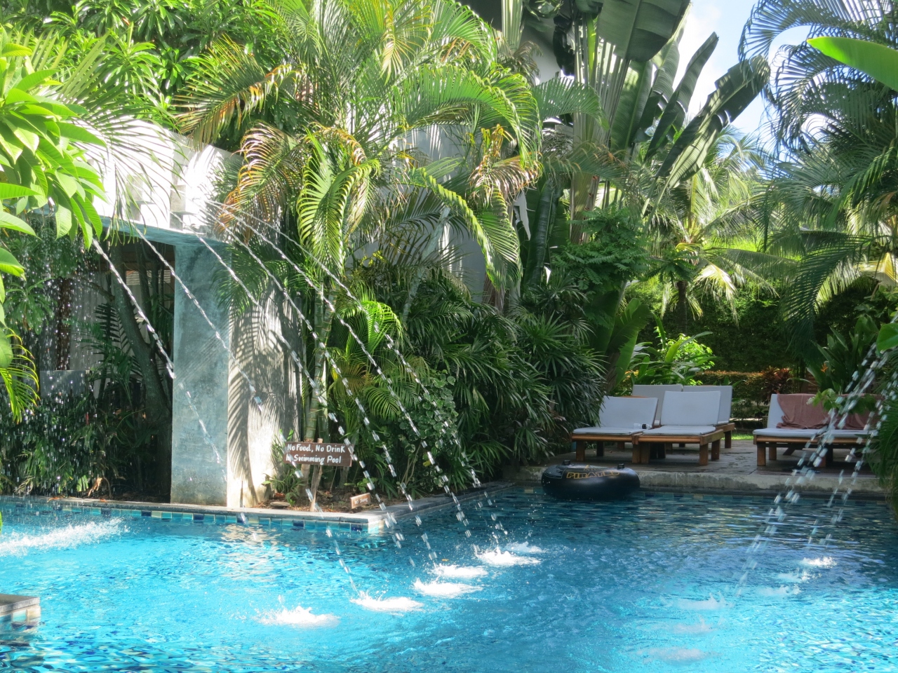 最初はオンザビーチのホテルを検索していたんだけど、水道水が濁っていたとかいろんな口コミを見て結局徒歩圏内でビーチに行けて近くにレストランやお店があるところにしようとこの宿に決めました。今回この宿を予約する際、プライベートプールヴィラがプロモーション価格で60%OFFだったので即決!ホテルアクティビティが無かったのは残念だったけど、それなりに楽しめたし良かった。ホテルのスタッフはフレンドリーで対応も良く居心地良かったです。毎朝朝食のジュースサーバーにスイカジュースがあれば言うことなしだったけど、それは仕方ないか。。。^^;
