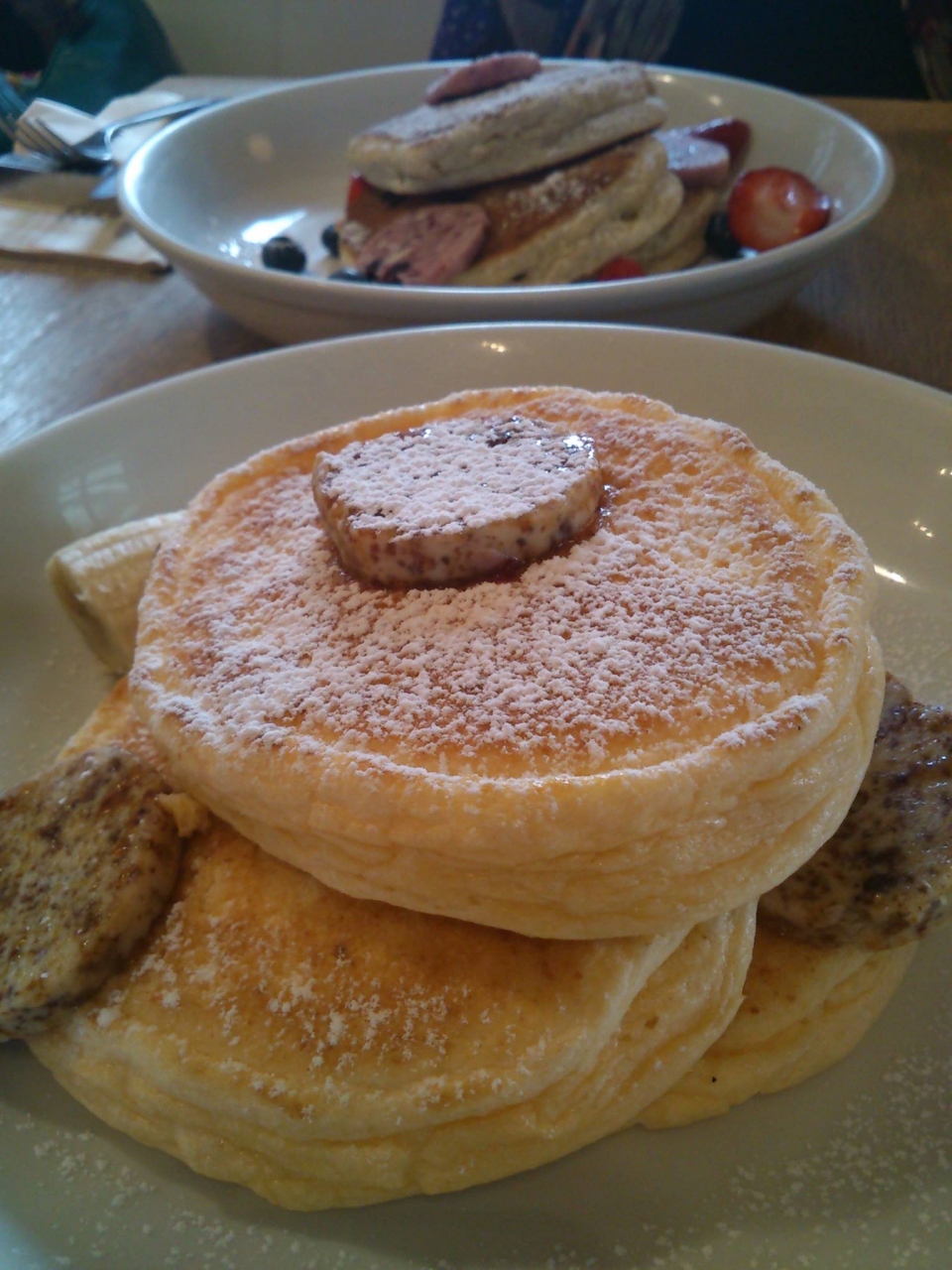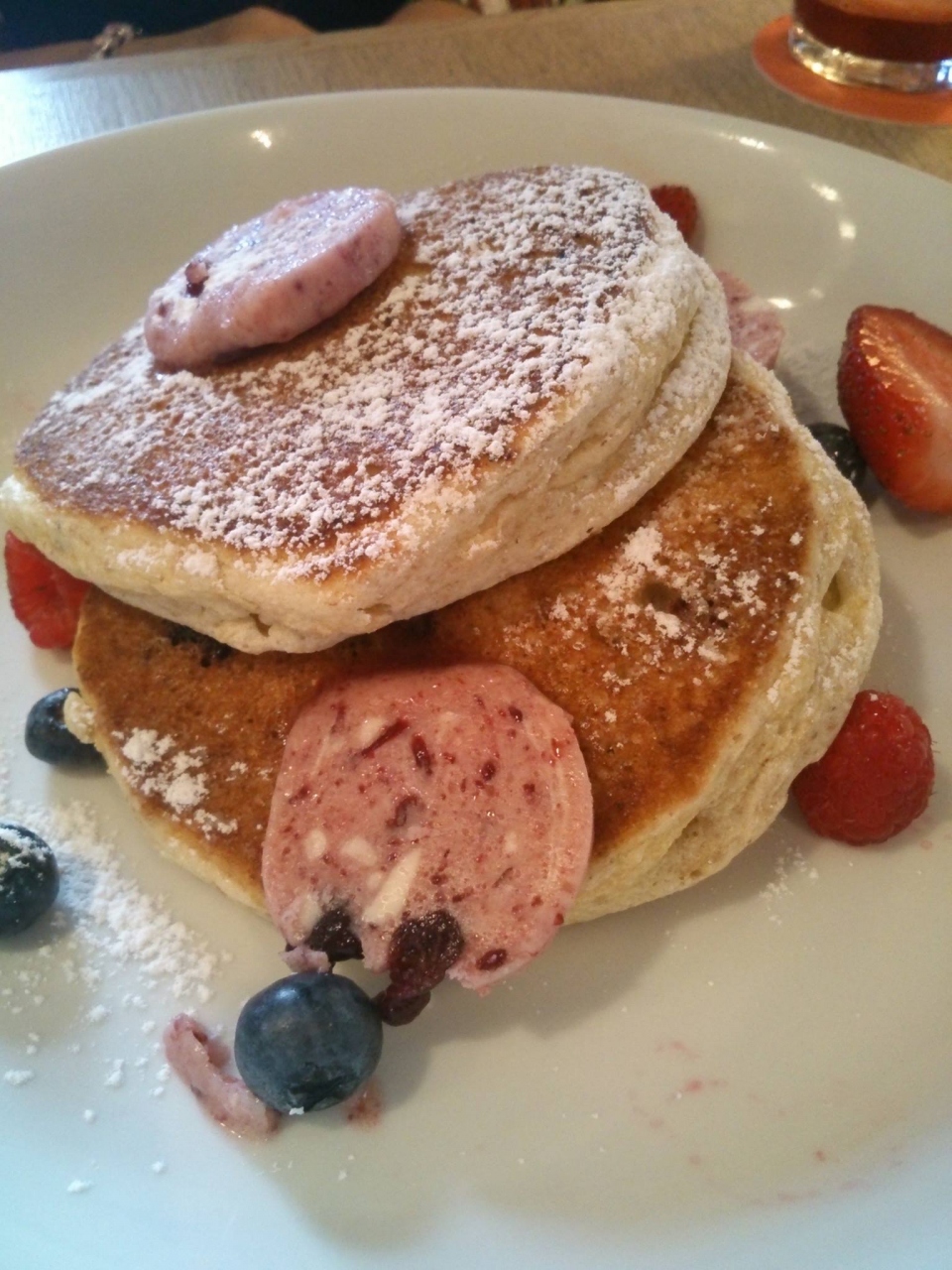 前日に表参道へ行っていたんだけど、時間的に中途半端だったので横浜で食べることに^^ 表参道よりは横浜の方が景色も楽しめて良いかも☆ でもそれは平日だったからだと思いますが^^; まず思ったのがスタッフの方の笑顔や対応が良い♪ これから出てくるパンケーキにも期待、お店に対する好感度もUP! メニューの説明も細かくてgooooooood!! そりゃハリウッド俳優さんも行きつけになるはずだ^^ パンケーキはリコッタチーズが入っても味が濃くなくメープルシロップ?をかけてちょうど良い感じ。ベリーベリーパンケーキは対照的に生地に全粒粉が入っているので味が全く違う☆そのギャップが良く、食べ比べできてちょうど良かった♪ 雰囲気、景色、ホスピタリティが揃っていて個人的には大満足なお店です。