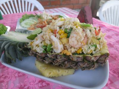 4種食べてジュースも飲んで満足できる価格。パイナップルチャーハンはガイドブックに乗ってたので食べてみたけどここのお店のパイナップルチャーハンはミックスベジタブルでがっかり... きっと他のお店は美味しいのかも?! その他の料理は美味しかったです。雰囲気も良いんだけど、夕日が見れないのが難点... 夕焼けは見れるのでまずまずかな。他のお店なら夕日が見れるかもしれないけど値段が高いかもしれないし... サンセットを見てから入店した方が間違いないかも☆ お洒落に&ロマンティックに過ごすという方は別のお店の方がいいかな。
