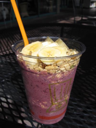 Allaboutの記事を抜粋「日本未上陸! サプリメント・スムージー」カルフォルニア生まれのジュース専門店「ジャンバ・ジュース」のスムージーです。このスムージー、たった1杯で数種類ものフルーツが摂取でき、さらに、「ブースト」とよばれるビタミンや食物繊維などのパウダーを無料でプラス。旅行中の体調管理が手軽にできる日本未上陸のサプリメント・スムージーなのです。好みのスムージーは、事前にチェック!スムージーの種類は、20種類以上。ユニークなネーミングのスムージーが並ぶ英語メニューの中から、ミックスされるフルーツ名を読んで、好みのスムージーを見つけ出すのは、ちょっと大変。プロテインやビタミンなど、はじめからブーストが入っている種類もあるので、事前にホームページでお目当てのスムージーを探しておくといいでしょう。「ストロベリーズ・ワイルド」はアップル・ストロベリージュースと冷凍ストロベリー、バナナ、無脂肪フローズンヨーグルトと氷をミキサーに入れてシェイク。イチゴそのままの甘さを生かした贅沢なスムージーは、すっきり爽やか。ほかに、コクのある「マンゴ・ア・ゴー・ゴー」(パッションフルーツ・マンゴジュース+冷凍マンゴ+パイナップルシャーベット)、「オレンジ・ドリーム・マシーン」(プロテイン+絞りたてオレンジジュース+オレンジシャーベット+無脂肪フローズンヨーグルト+豆乳)も人気です。「その日の体調に合わせてサプリをプラス」スムージーが決まったら、次に無料のブーストを1種類チョイス(ミックスしなくても可)。「プロテイン」(PROTEIN)や「ビタミン」(VITA)、「食物繊維」(FIBER)のほか、女性に欠かせないカルシウムやマグネシウム、鉄、葉酸などか入った「フェム」(FEMME)、ビタミンCと免疫力をアップするハーブ、エキアセナが入った「インミュニティ」(IMMUNITY)など、その日の体調に合わせて選ぶことができます。そして、最後にカップのサイズを決定。スモール(16oz: 約470cc)、レギュラー(24oz: 約710cc)、パワー(32oz: 約950cc)の3つのサイズがあり、スモールで3.75ドル~。名前を告げ、ミキサーでシェイクするのを待ちましょう。現在、ハワイ各島に30店舗以上を展開している「ジャンバ・ジュース」。ヘルシー志向のロコ達はもちろん、全米で人気のこのスムージーを旅行中のビタミンやエネルギー補給に利用してみてはいかがですか? トロ~っと冷たいスムージーはボリュームもあり、朝食代わりにもOK。ワイキキでは、ワイキキ・トレード・センターにあります。http://jambahawaii.com/Default.asp