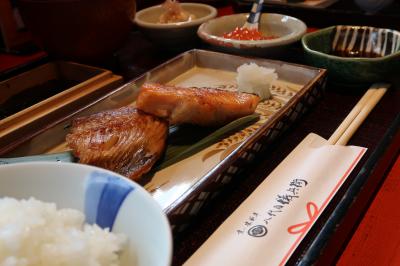 予約は2ヶ月前。楽しみにしていた浴衣で京都観光。せっかくなので美味しいランチを頂こうということになり、オープン前にお店に着いたらすでに予約の方で列ができていた。夏の暑い日に炎天下待つのはとっても暑かったけどそれも数分。季節の焼き魚の二種盛り銀シャリ御膳 と別でいくらを追加。とっても美味しかった~!こんなに美味しい魚は普段なかなか食べられないし、美味しい白米とバッチリの組み合わせでした!