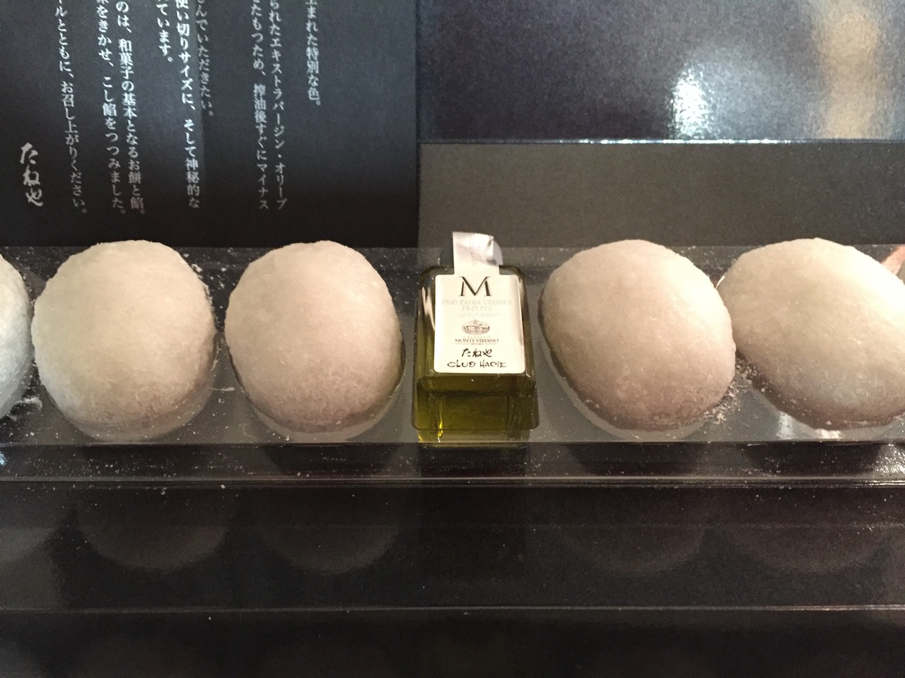 オリーブ大福!初めてトライしてみました。オリーブオイルを大福にかけるなんて斬新☆ おもたせに購入して私も頂きました。 オリーブオイルの香りが良く美味しい!それを大福にかけるなんてもったいないと思いましたが意外や意外 合いました。大福自体ももちろん美味しかったです