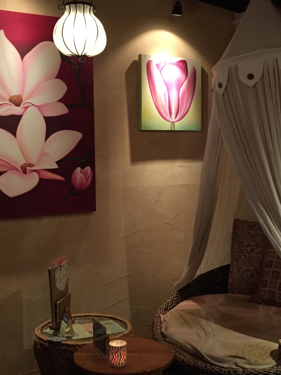 食事後に別の友人とも合流。タイ好きな人たちばかりが集まってそれぞれの思いを馳せられるベストなお店でした。手前のカフェや雑貨も良かったのですが、奥の天蓋ソファがたまりませんでした。スムージーも体に良いメニューがあったりとまた次回も利用したくなりました。
