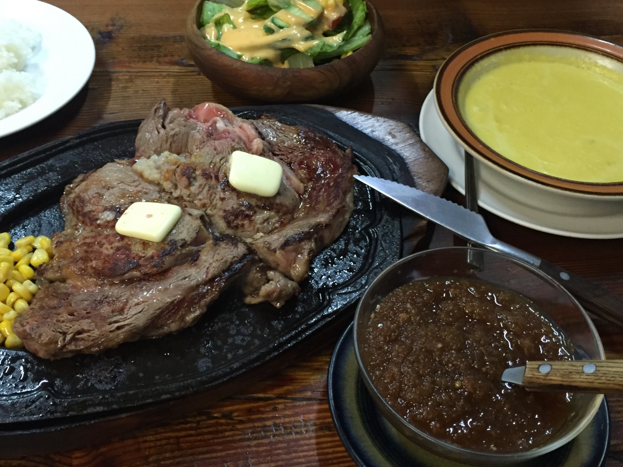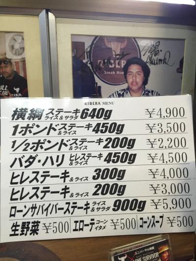 以前からいつか行こうと言っていた。たまたま時間があったのでお盆にリベラさんへ。5時過ぎで待ち客2組。店内はすでにいっぱい。どんだけ人気なの~。1ポンド以上の横綱ステーキ640gまであるなんて!私はもちろんハーフポンドステーキ。普通に美味しかった。