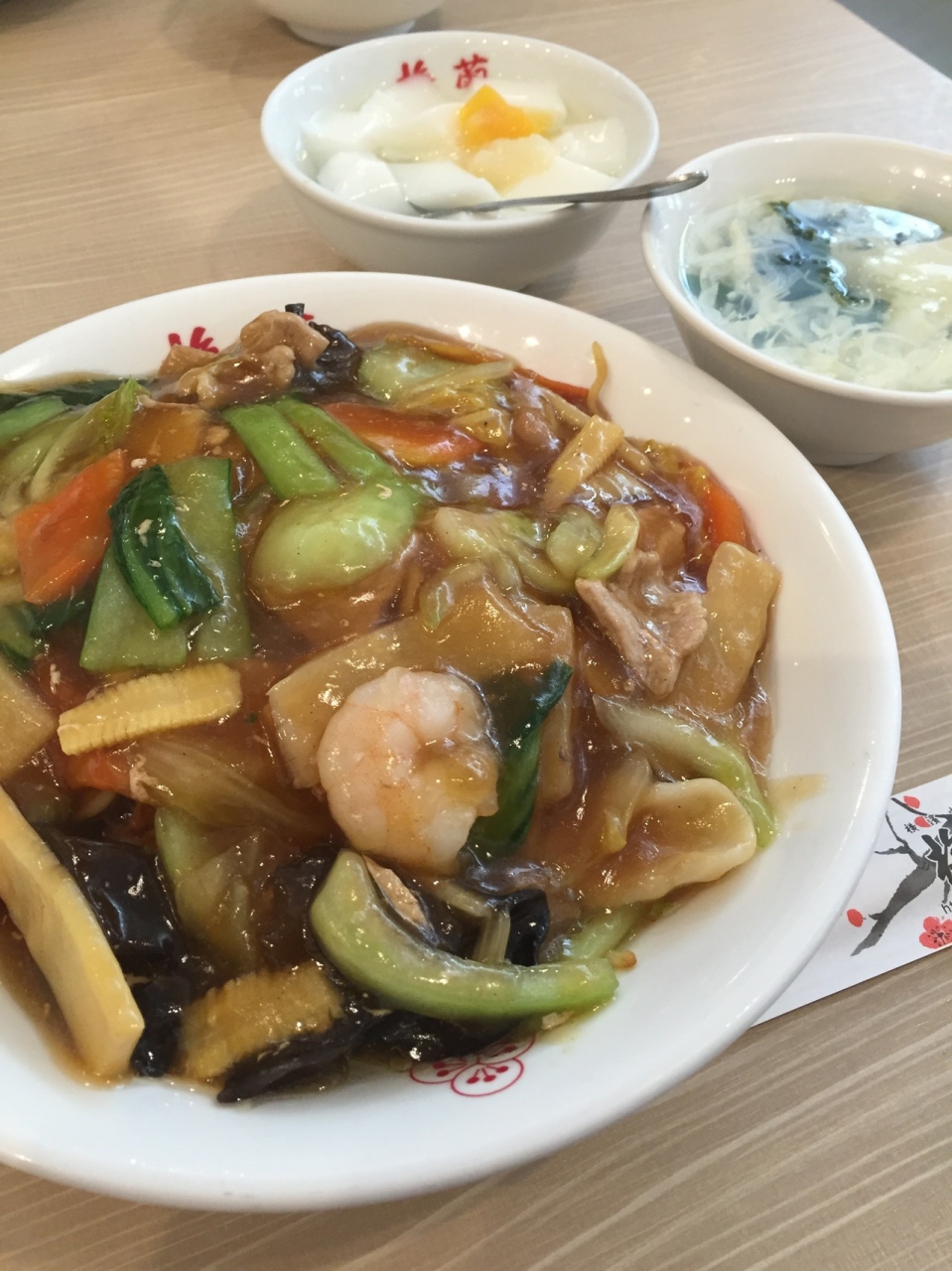 レストランも良かったけど、梅蘭で中華が食べたくて、あんかけ焼きそばをオーダー。店員さんはアジア系の方だけど対応はとても親近感がわく丁寧さでした。味は美味しく量も多いので満足満足!平日はガラガラで席取りもなくフードコートで十分食事を楽しめました
