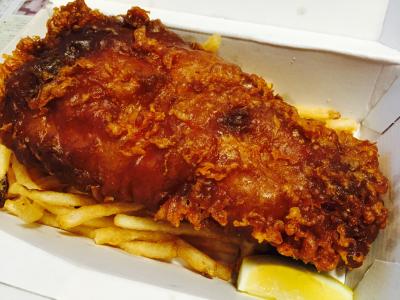 BOXに入っているのはお魚とポテト。魚とポテトは多めなので一人で完食はちょっと難しいかもしれません。でもシェアだと物足りないかもしれない量なのでデザート(ポップオーバー)も付ければいい感じかも。鱈とサーモンの2種から両方とも鱈を選んで、ポテトはナチュラルカット(フレンチフライ)とクリスピークリスプ(普通のポテト)をチョイス。鱈にかけるお酢はモルトビネガー(英国)、タバスコ(米国)、スイート(日本)の3種から選べるのでもちろんモルトビネガーをチョイス。ポテトにかける調味料はハーブソルト、岩塩、カレー塩。このセットにはタルタルソースが付いているけど、タルタル以外にも有料でアイオリ(にんにくマヨ)、サンバル(インドネシアソース)、シーフード(不明)が選べます。ちなみに私はタルタルをチョイス。お持ち帰りがメインなので家に持って帰って食べましたが、モルトビネガーの香りが懐かしく揚げ物にピッタリ!お酢をかけるの?と思っている方が多いと思うけど、現地ではこれが普通の食べ方。私はNZで食べたけど、日本でフィッシュ&チップスに出会うのは難しく昔オーダーしたら魚のフライが出てきてショックだったけど、まさか西宮で本場の味を食べることができるなんて。嬉しいお店がオープンしてくれました。