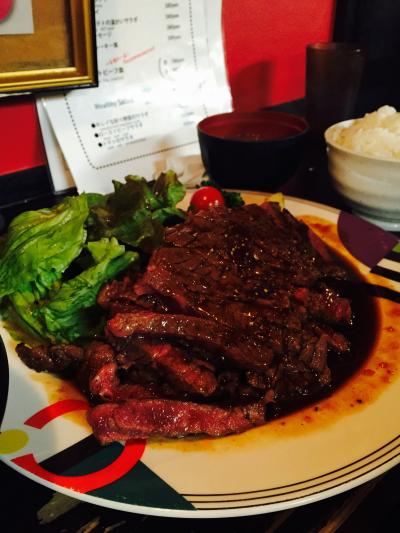 たまたま6時頃三宮にいたのでお店に寄ってみた。するとほぼ満席。カウンターに通されたけど狭い...オーダーしたのがステーキ丼並と1ポンドステーキ定食。ステーキ丼は甘めのタレがご飯までいい感じに染みてて美味しい。器は上げ底なので女性で大盛りでも大丈夫。私は夜炭水化物を減らしているので並にしたけど腹八分目って感じ。もう一つの1ポンドステーキはお肉の量がすごい!タレも沢山かかってて学生や若者ウケしそう。ただ、メニューによって牛の種類が違うらしく、ローストビーフ丼は厳選された赤身肉。焼肉丼はアメリカのブランド牛。ワンポンドは記載無し。焼肉丼のお肉とワンポンドのお肉を食べ比べるとお肉の香りが違ってて、人気No1とNo2のローストビーフ丼とステーキ丼のお肉の質が一番良いのかな?と思いました。話のネタには良さそうだけどお店が狭いのでリピートはちょっと考える。でも人気No1のローストビーフ丼はまだ食べてないので いつかまた食べに行ってもいいかなと思った。