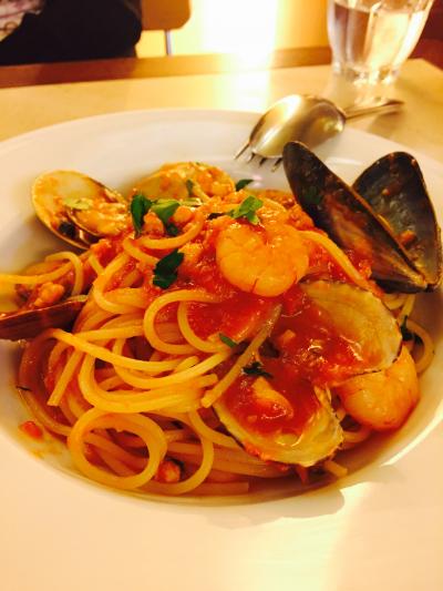 コースじゃなくアラカルトで好きな物をオーダー。スペシャルサラダの上に小さいフォアグラが乗っかってたの、知らずにオーダーしたんだけど美味しかった^^ パスタはペスカトーラ。魚介もちゃんと入っててパスタの量は2人でシェアしてちょうど良い感じ。その後ピザマルゲリータ!薄い生地の上にぎっしり乗せられた具。生地より具の量が多く感じて嬉しい^^ また機会があれば行きたいとおもいます。