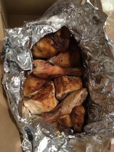 テイクアウトは予め電話しておいた方が確実。1羽2,000円弱、半身1,000円弱。カットをお願いすると6ピース程に切り分けてくれ、食べやすい。