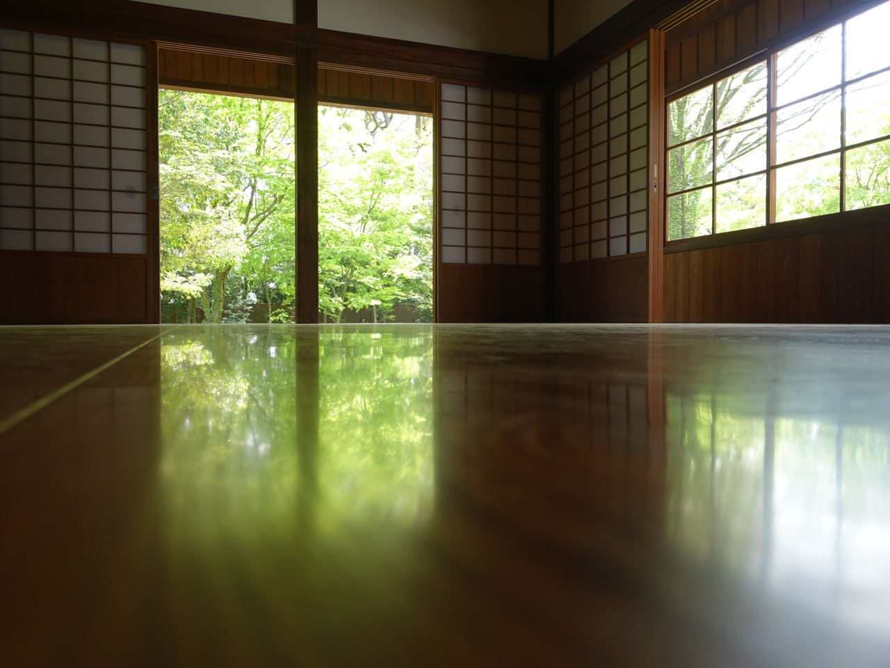 岩倉実相院の床みどりは有名ですが、撮影禁止とか。人がほとんどいなくて癒やされる上、写真撮り放題の床みどりが、無料で楽しめるスポットが御苑内にあり、こちらの方がおすすめかも。