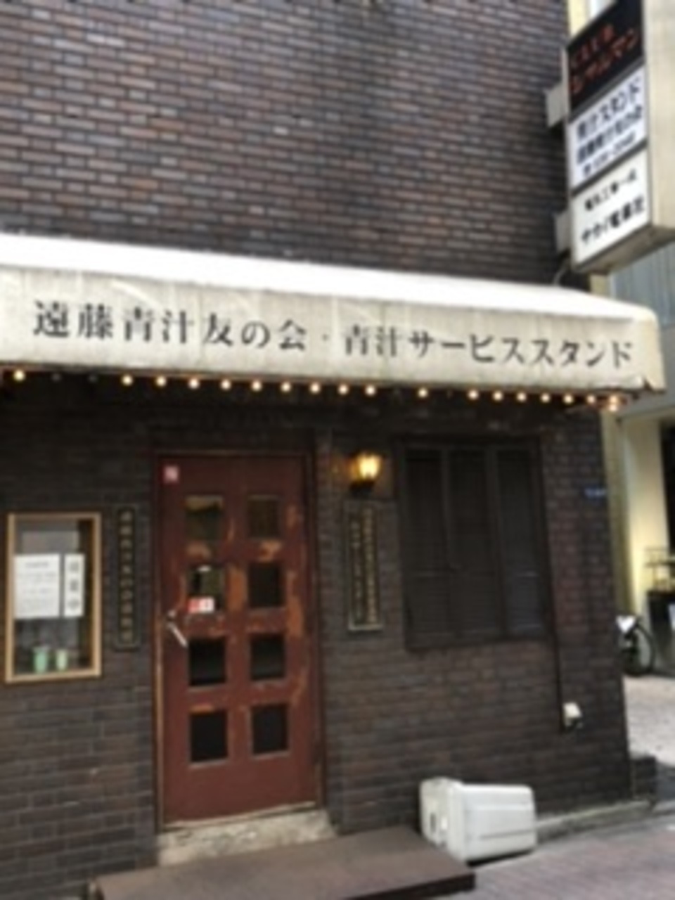 銀座の路地に長く営業している青汁スタンド。カウンターでお金を払い、コップになみなみ注がれた青汁を受け取る。テーブル・椅子もあるが、カウンターで一気に飲んで帰るお客さんも多い。銀座で飲む前や、外食が続いたランチがわりなど、サッと栄養補給できる便利な店。