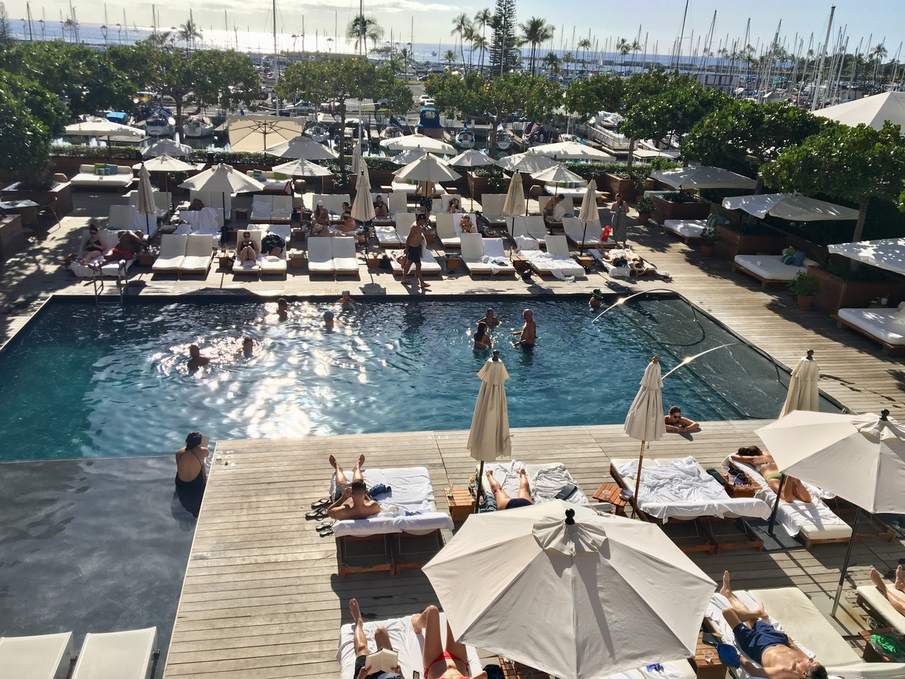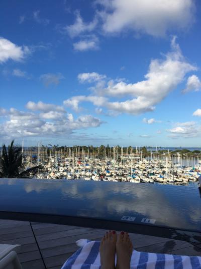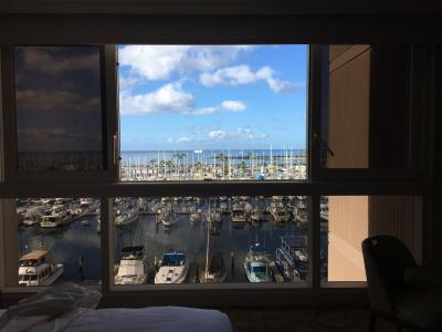 全面改装後の部屋は大きな窓からアラワイハーバーが綺麗に見える。むしろ低層フロアの方がヨットがよく見えてオススメ。プールはインフィニティで広く開放感たっぷり。ハーバーから吹く風が心地よく、ゆっくりした時間を過ごすのにピッタリ。ワイキキから離れるが、アラモアナも近く、利便性にも問題ない。