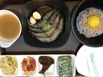 リーズナブルにカンジャンセウ定食が食べられると聞き、ピークタイムを外して17:30頃に入店。店内には他にもおひとり様がいて、気まずさはない。メニューも壁に写真付きで張り出されておりオーダーも簡単にできる。カンジャンセウは生臭みもなく、醬油味が濃すぎることもなく美味しい。4本のエビが3つにカットされており食べやすい。頭の味噌を卵黄の乗ったご飯に混ぜ、セウの入っていたたれを加えると美味しい。カンジャンケジャンほどの感動はないものの、お値段に比した満足度は感じられる。