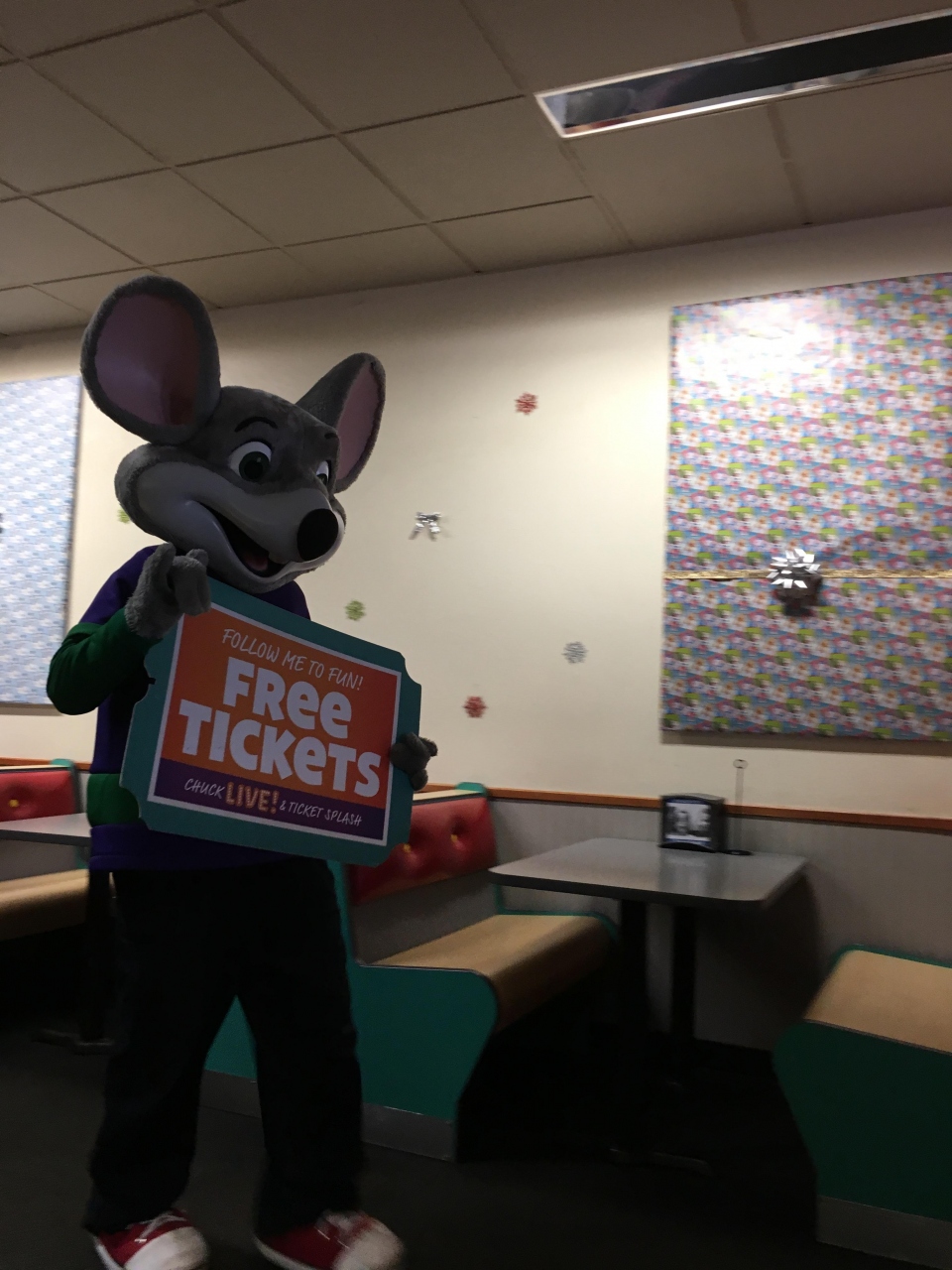店のキャラクター、チャッキーがたまに登場して子供たちと一緒にダンスしたり遊んでくれます。