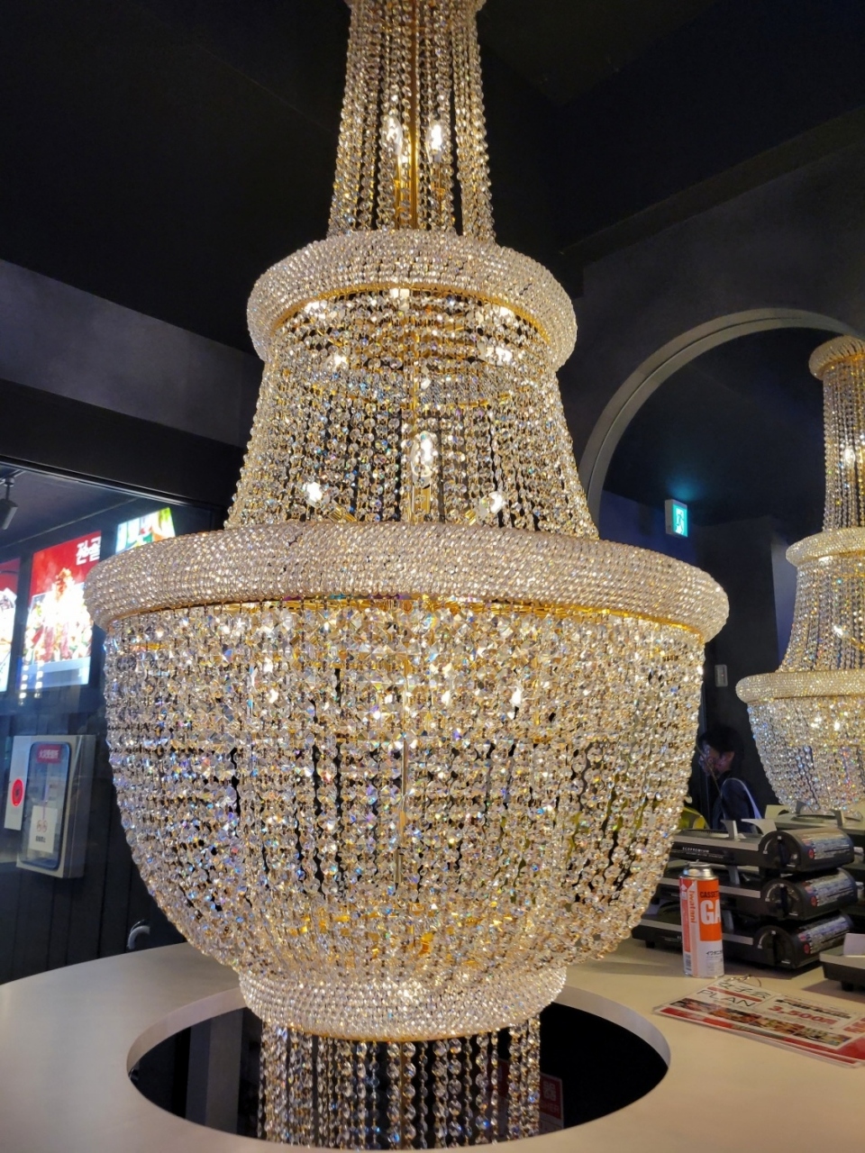 入口はいったらすぐ大きなシャンデリアに