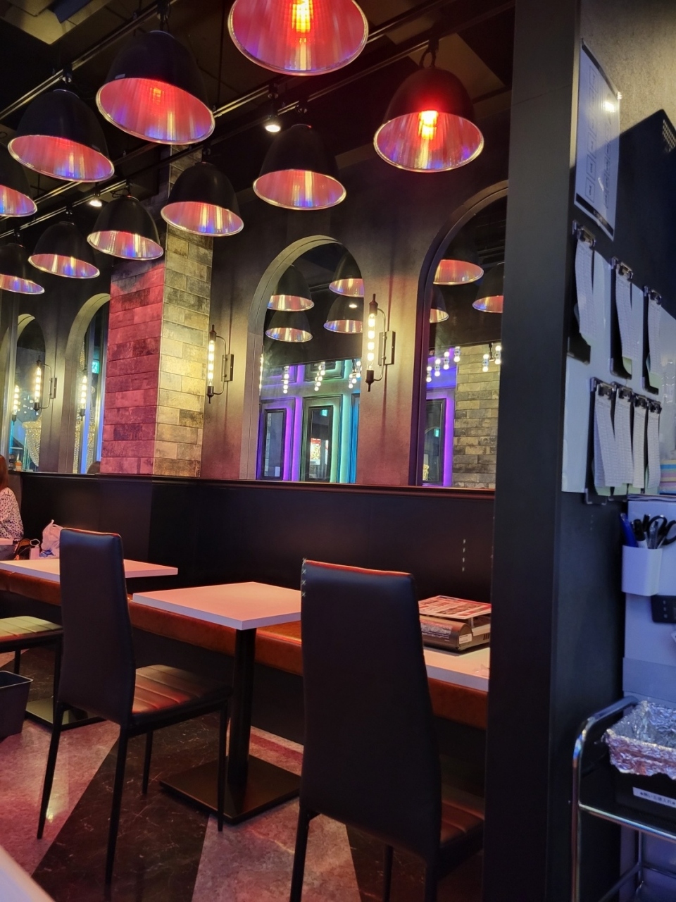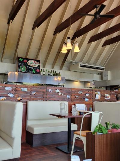 テーブルやいすが壁にかかっていたりとパリピ仕様な内装で面白かったです。