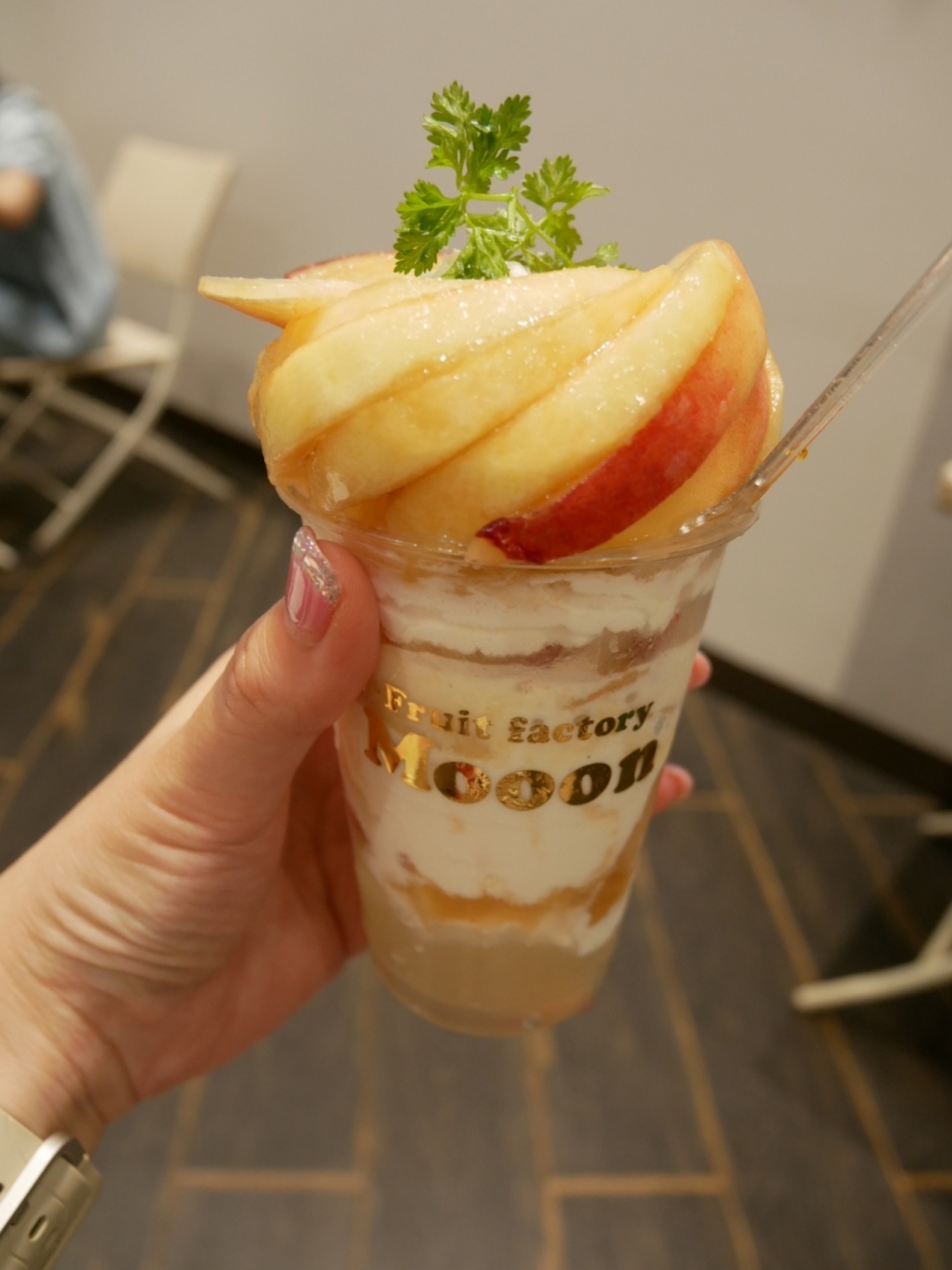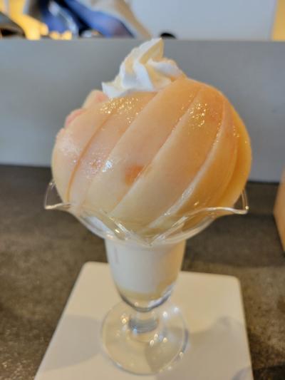 大糖領の桃パフェ@2,750円はきれいなカッティングで