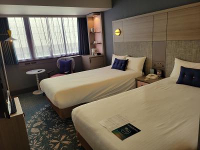 コンフォートツインルームはビジネスホテルにしては広めで2人でも快適でした。