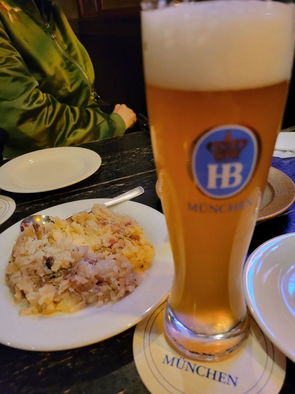 ジャーマンポテトとザワークラウトで乾杯。