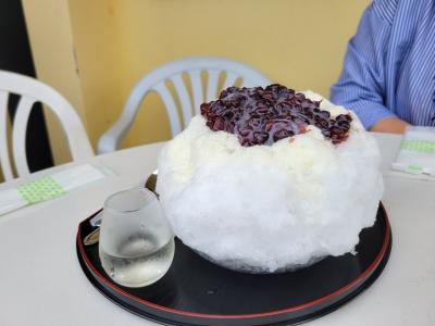 万座ビーチ近くの人気のかき氷やさん。