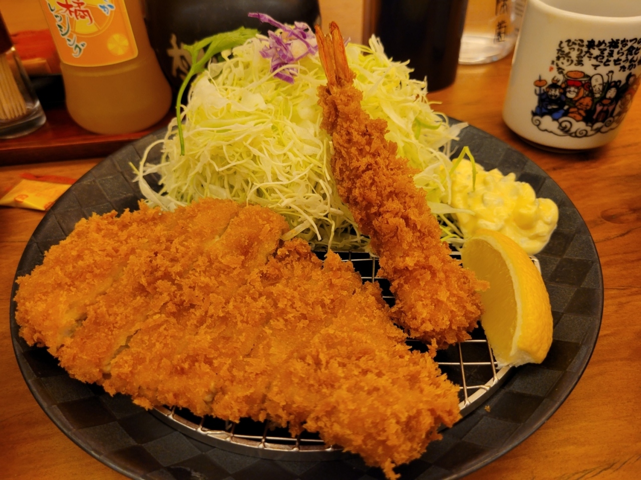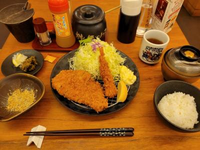 選べるランチはトンカツ+ヒレカツ/エビフライ/クリームコロッケが選べて1,100円とコスパよしでした。
