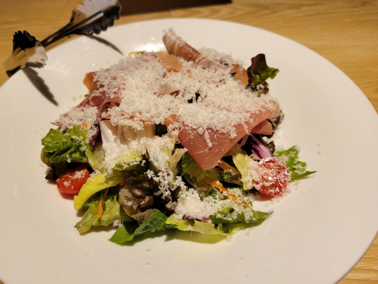 2人用のコースが5,000円弱でサラダ+パスタ+ピザ+