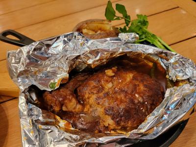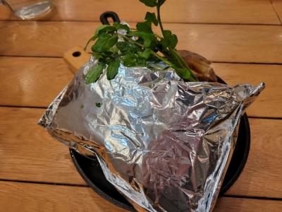 ホイルに包まれたつばめ風ハンブルグステーキは