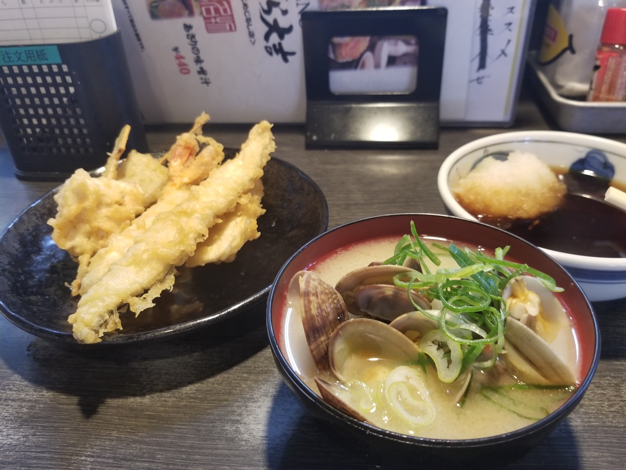 あさりそばはしょうゆベースでけっこうアサリがきいていておいしかったです。