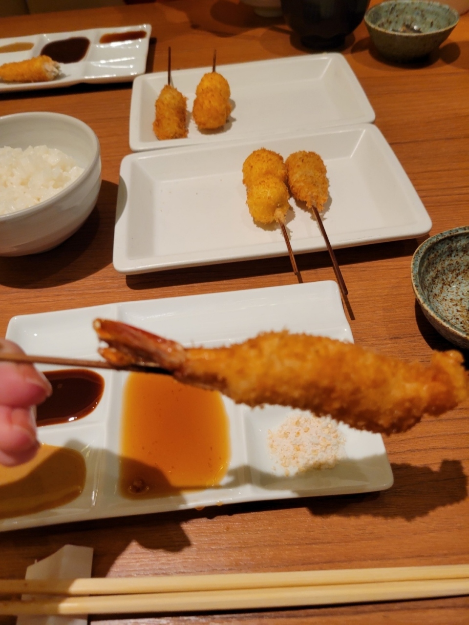 串カツ10本とご飯とお味噌汁のついたランチ@1,365円とコスパよしです。- 旅行時期
