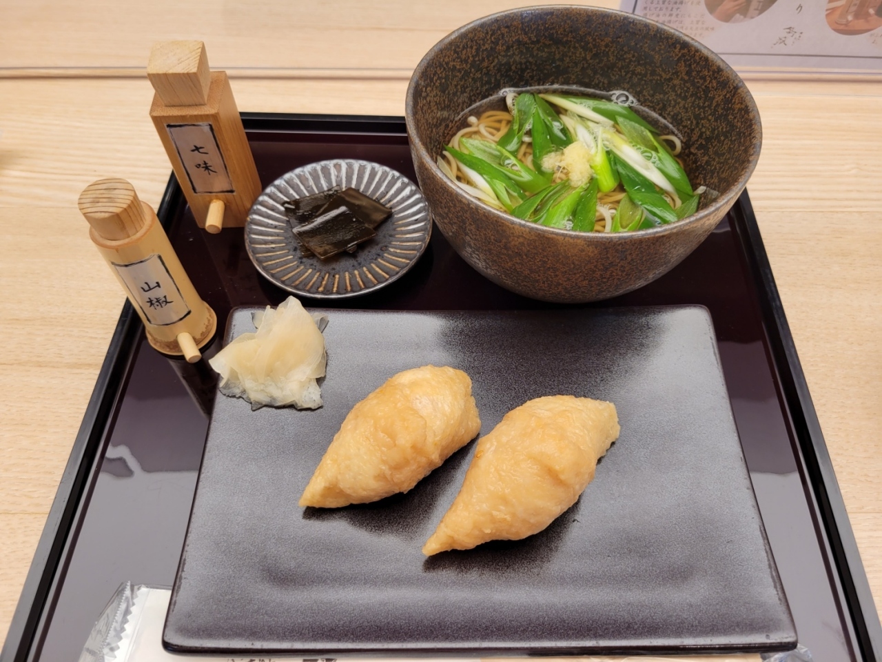 たんとおたべセット@750円はおいなりさん2つとお蕎麦のセットです。