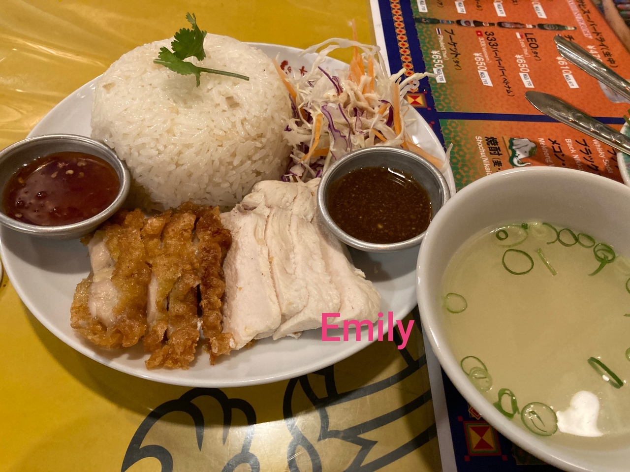 店名のカオマンガイは蒸し鶏と揚げ鶏の2種類あり。(ハーフ&ハーフもあります)