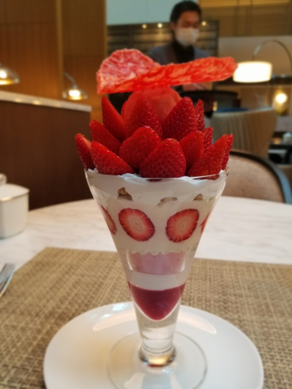 品川のストリングスホテルのカフェでいちごパフェを食べました。