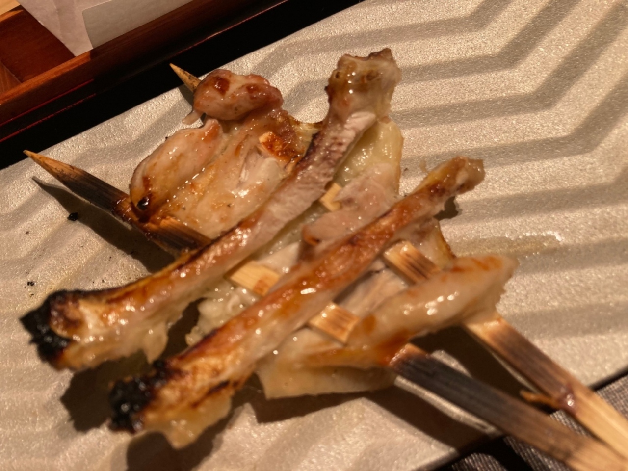串焼きのコース@5,480円は串6本、お野菜2種類と少ないかなと思いましたが