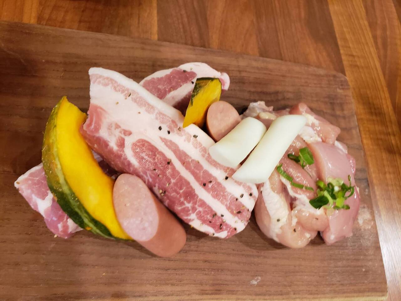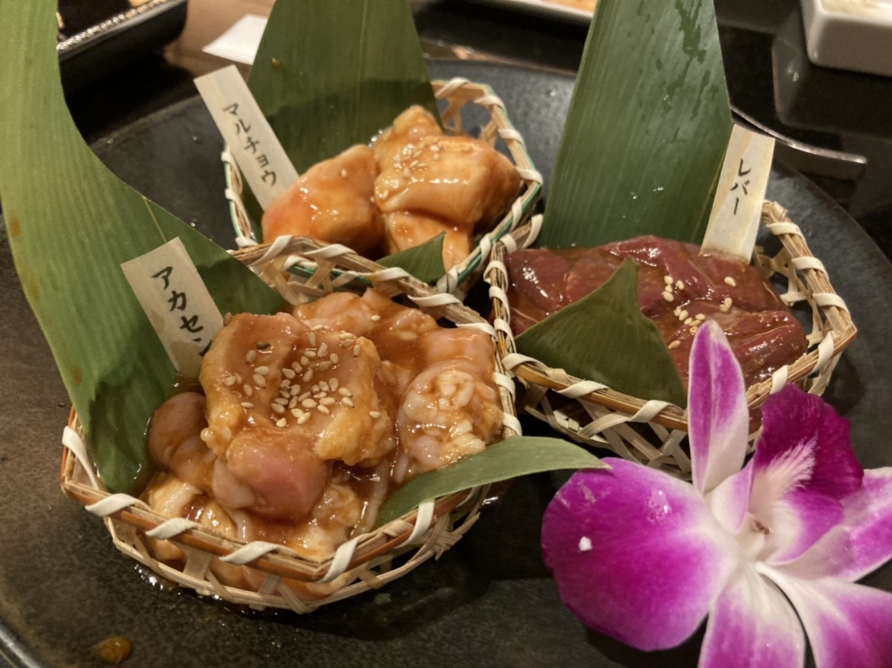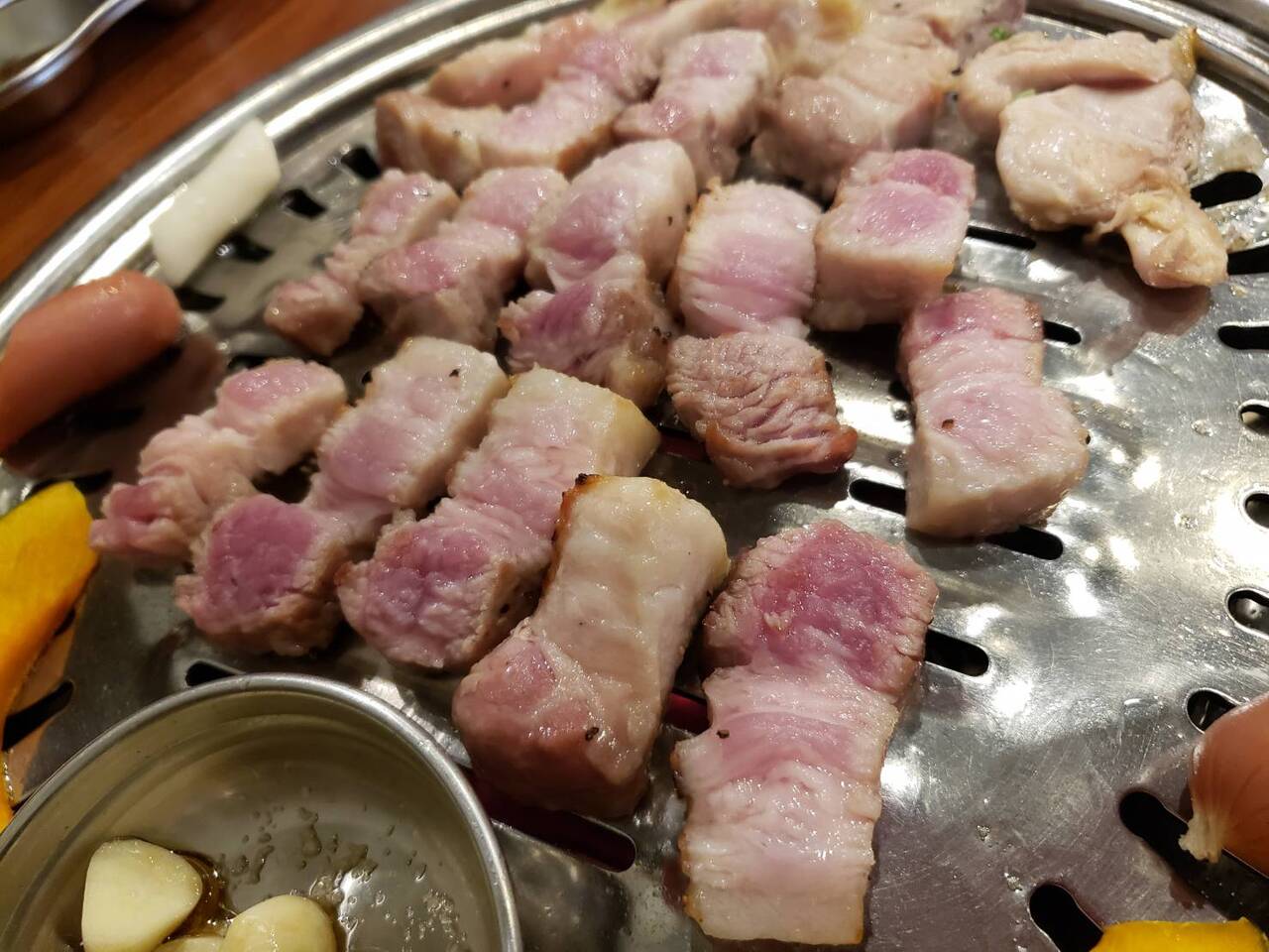 お肉は分厚いサムギョプサルのほか、鶏もついているのが珍しいですね。