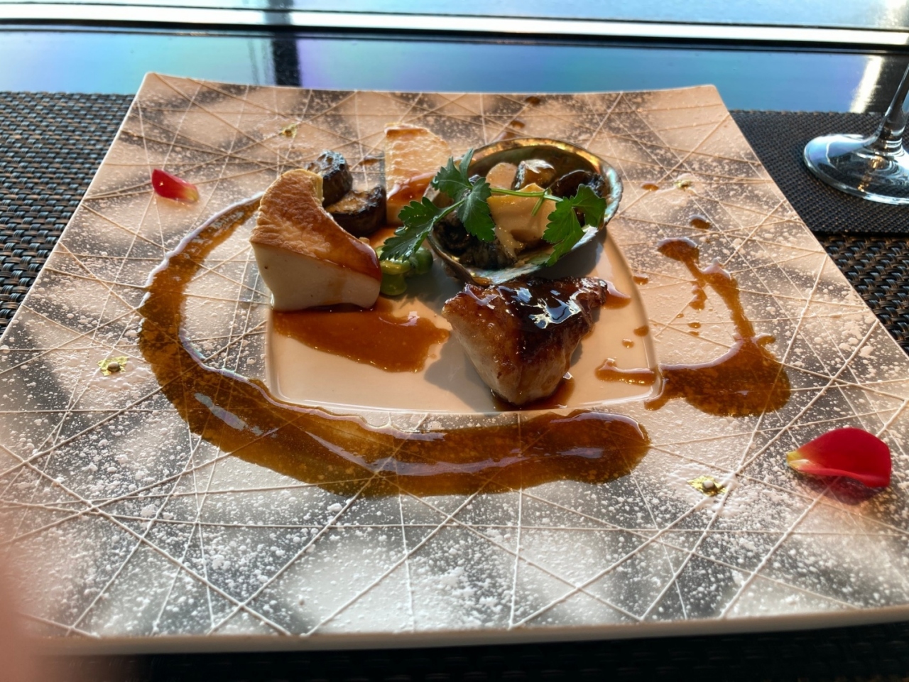 アワビやお魚、お肉のついたペアランチ@6,000円を食べました。