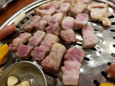 鶴橋駅近くにある韓国料理やさんでサムギョプサルランチ。