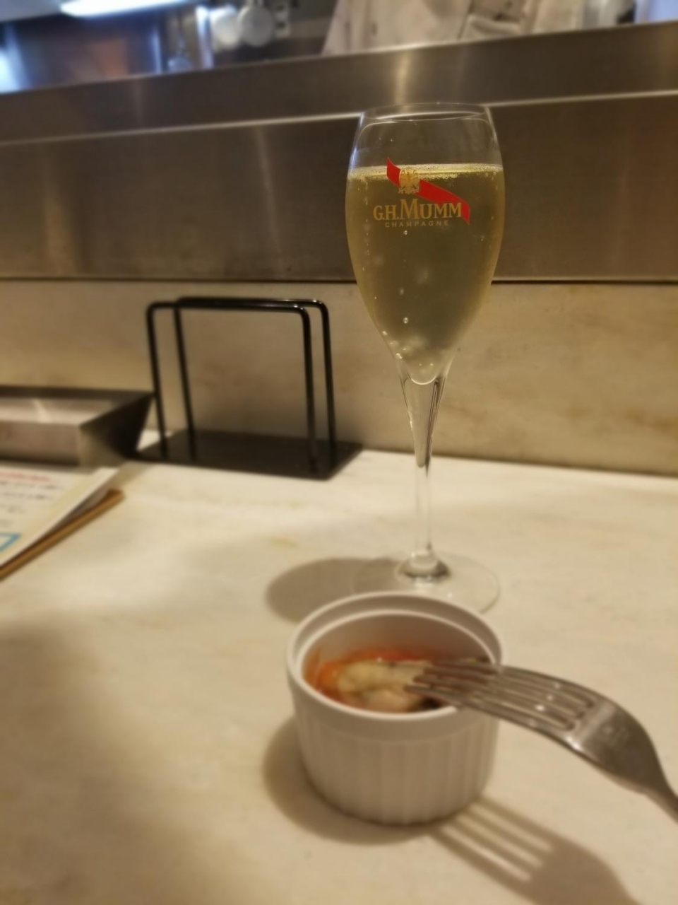 ひとりなのでカウンターでさくっと生牡蠣とアヒージョを食べました。