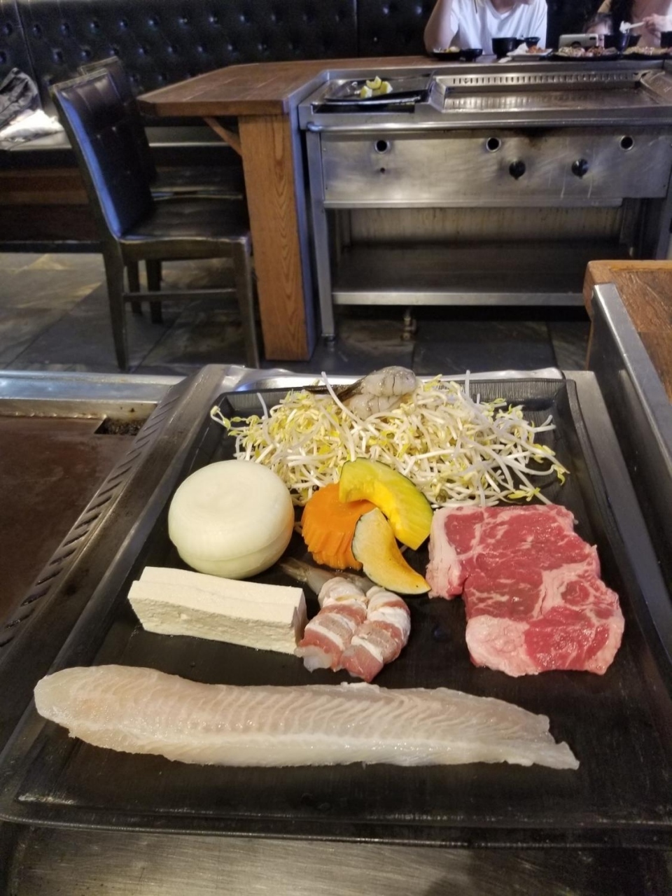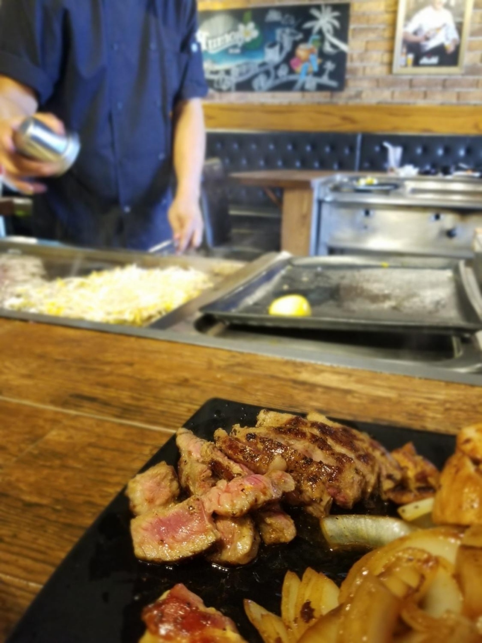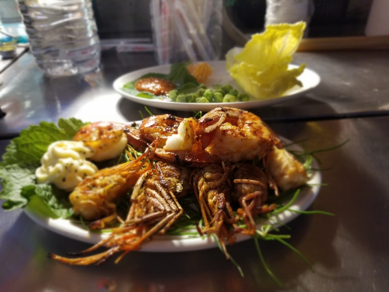 牛とエビのグリル、ドリンクで65ドルほどと安くはありません。- 旅行時期